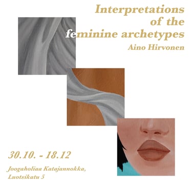 Inspiroituneena psykologi Carl Jungin teorioista feminiinisistä arkkityypeistä halusin avartaa niitä omalla katsomuksellani feminiinisyydestä. Arkkityypit ovat metaforia psykologisille ilmiöille, jotka voivat ilmentyä yksilön sisäisessä tai ulkoisessa todellisuudessa. Arkkityyppi itsessään on ns. tuntematon, ymmärrämme sen fyysiset puolet arkkityyppisten kuvien tai manifestaatioiden kautta.