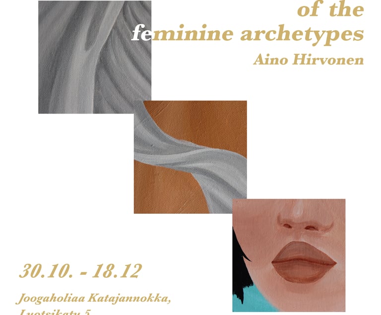 Interpretations of the Feminine Archetypes -näyttelyn ajaksi Joogaholiaa pukeutuu feminiinisiin arkkityyppeihin. Näyttelyssä taiteilija Aino Hirvonen käsittelee feminiinin ilmentymistä jokaisessa meissä sukupuoleen ja identiteettiin katsomatta. Tervetuloa tutkimaan omaa suhdettasi feminiinisyyteen Aino Hirvosen tulkintojen kautta!